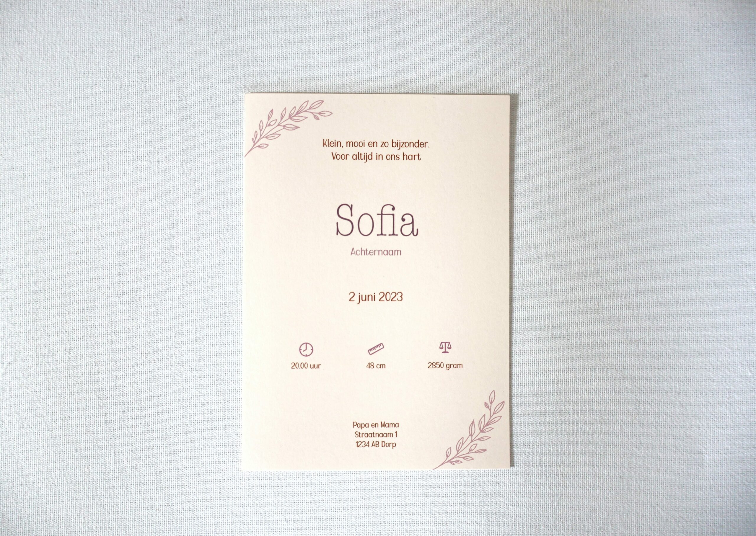 Een rustig geboortekaartje ontworpen voor het Morris Fonds, maar ook een mooie keus wanneer de wens is voor rust.